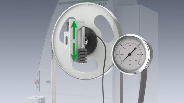 The motorized blade tensioning system automatically adjusts the blade tension during operation. This ensures a constant blade tension, which has a positive effect on the cutting quality and service life of the saw blades. Improper operation is made impossible, because the correct pressure is set automatically.