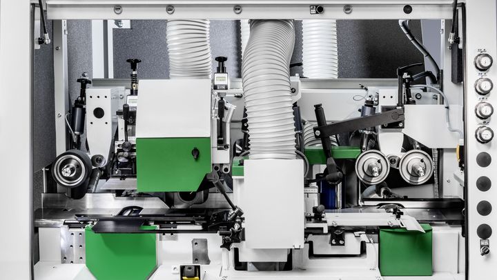 The outstanding accessibility of the SOLID PROFILE P enables all adjustments to be performed from the front side of the machine with ease - a large number of these are even wrench-free. Through the clear view and practical layout of the operating elements within the enclosure the operator's safety is ensured. During production the access door of the SOLID PROFILE P is locked according to safety regulations. Through the large window a full view of the working area is assured.